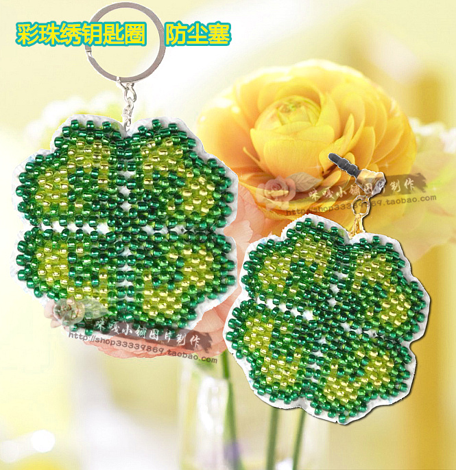 Dust stopper 1 (single buy anti-dust stopper no) Y013 four leaf straw key ring Pearl embroidered material bag Y053 LOVE Love key ring Pearl embroidered material bag