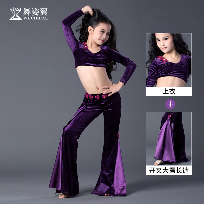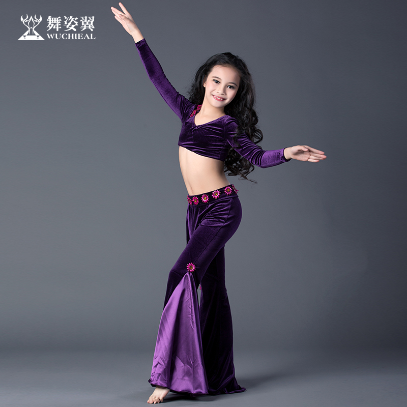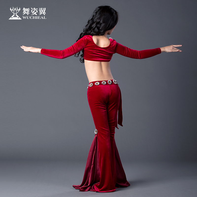 Dancing and gesture winged children belly dance with sweatshirt pants suit 2017 new young children rehearsal practice 208