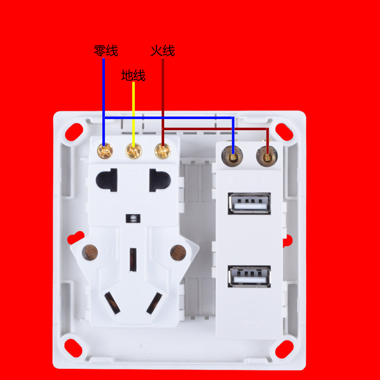 International Electrical Ming Line Two-position USB five-hole socket power panel Ming-mounted ultra-thin mobile phone charging double usb plug