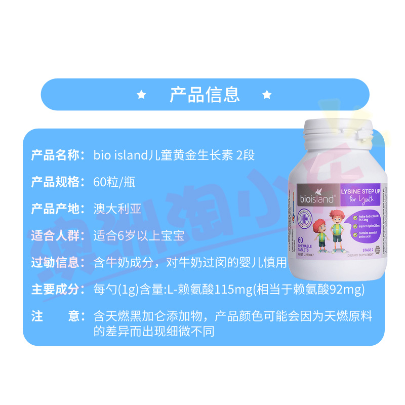 Australia Bio island Golden Ghrelin for children and adolescents 2-stage Lysine 2-stage long and high Boost 60 capsules