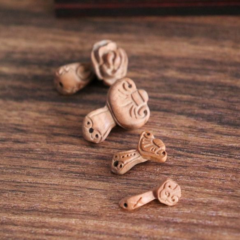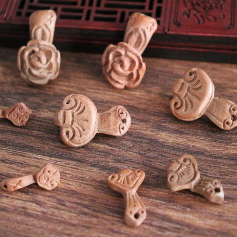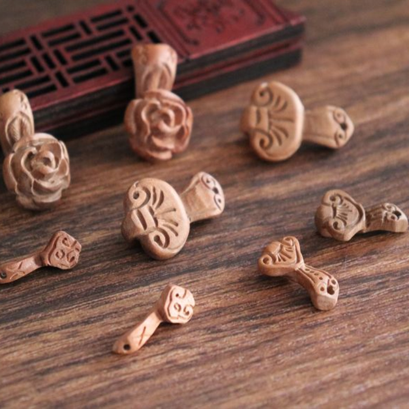 Peach Wood Engraving Fertilizer City Handmade Material Diy Material Men's Key Buckle Car Hanging Accessories Pendant Gifts Ruyi Flowers-Taobao