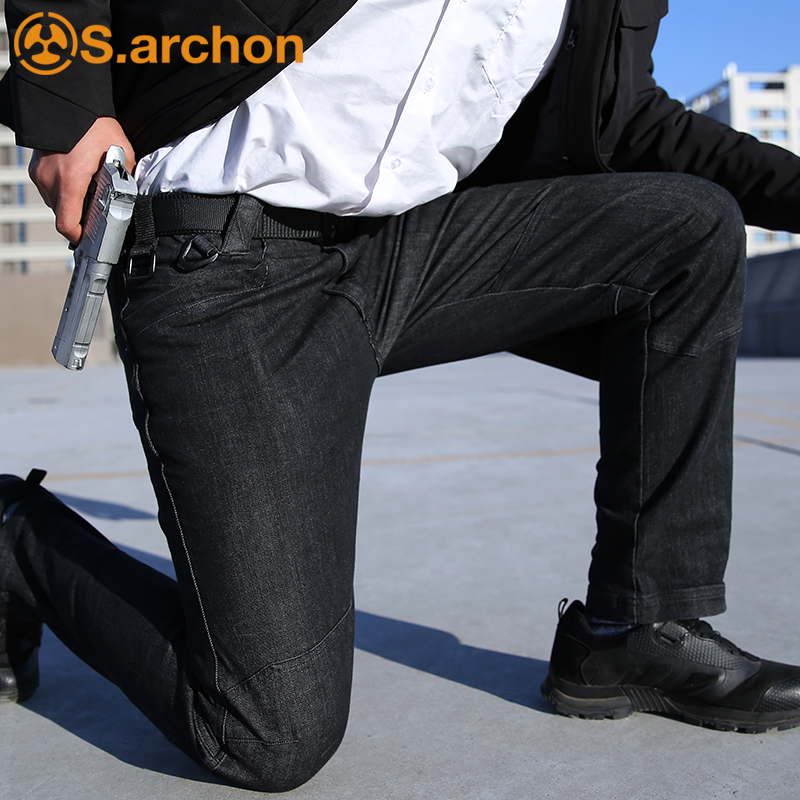 Aung Reclamation Tactical Jeans Men's elastic body Tummy Winter Multi-Pocket Army Meme Pants For Training Pants Straight Outdoor Workwear Pants
