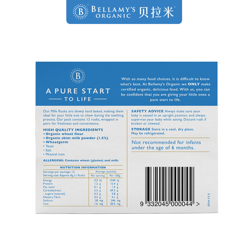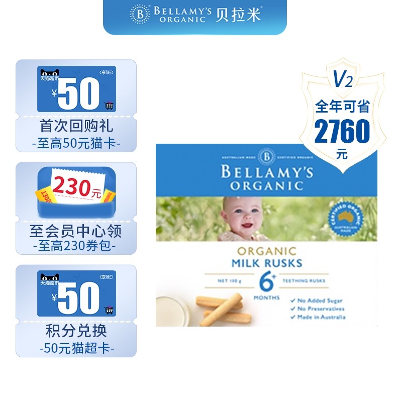 Bellamy imported organic baby molar stick Baby molar biscuit supplement 100g 6 months 2 times purchase