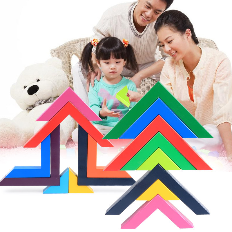 Mon Rainbow Gradient Right Angle Wood Parquet Building Blocks Build Puzzle Toys Children Building Blocks Sense Building Blocks-Taobao