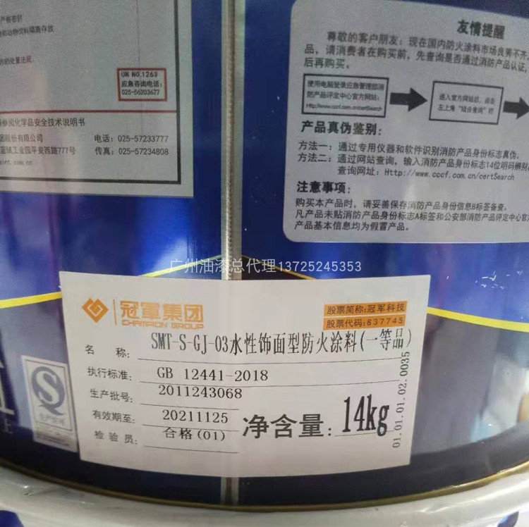 Whale sea finish type fireproof coating 14kg water-based white fireproof wood wall flame retardant A standard fire S code inspection