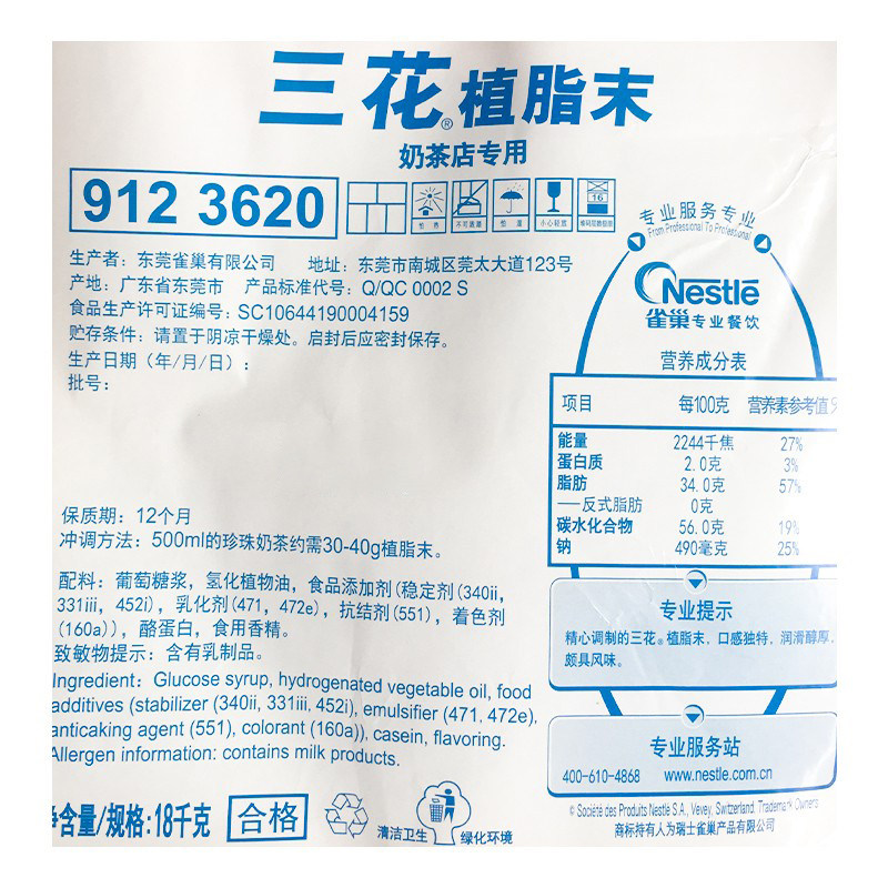 18Kg large package of Nestle creamer three-flower non-dairy creamer coffee partner material commercial baking base powder
