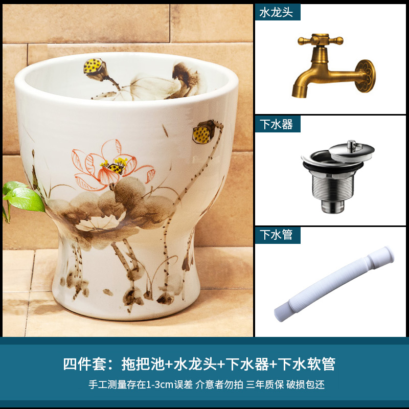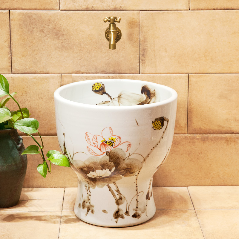Domei Wang Ceramic Mop Pool Jingdezhen Art Tools pool outdoor mop pool 40cm white ink Lily