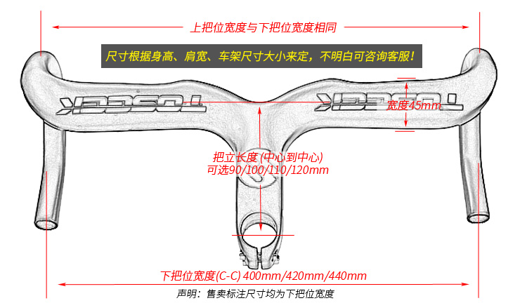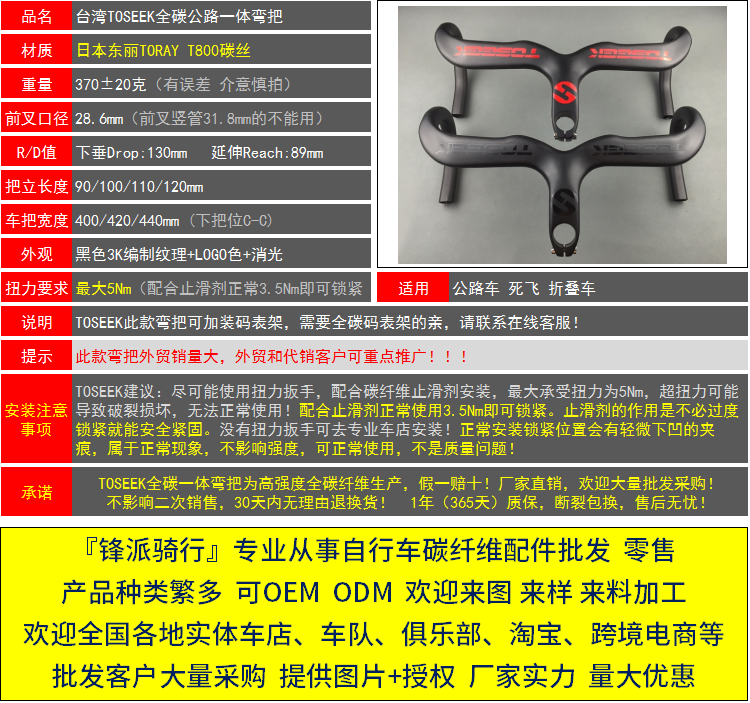 TOSEEK full carbon fiber road bike bend handle ultra-light inner wiring belt handle vertical integrated bend handle 3K pattern
