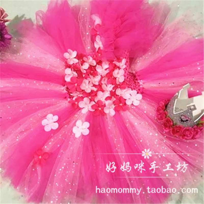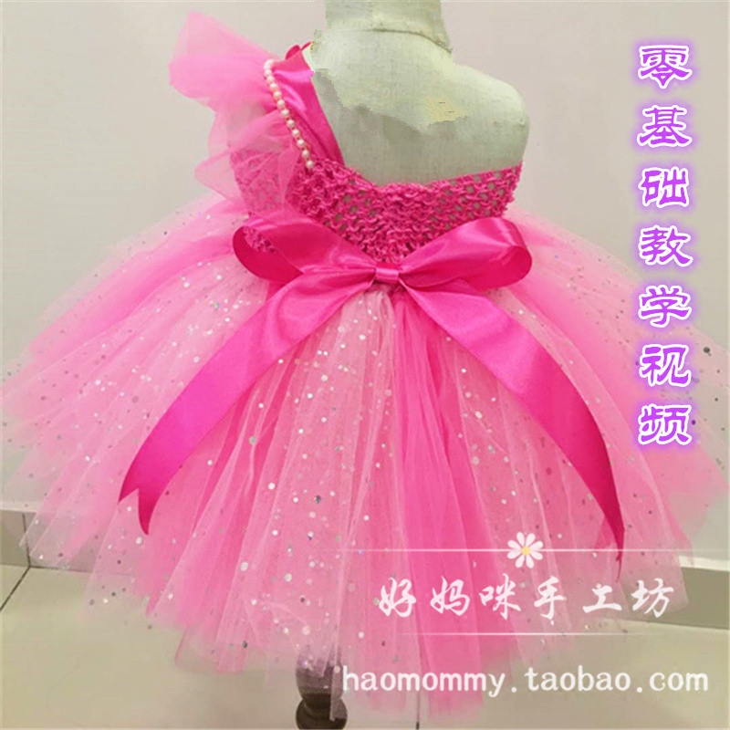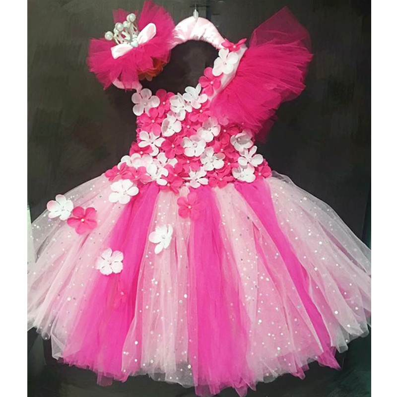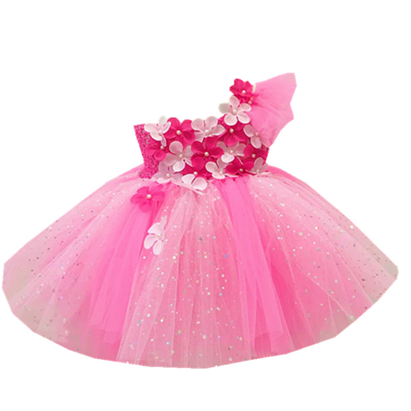 Inclined Shoulder Flowers Flying Sleeves Fluffy Skirt Material Bag Princess Skirt Short Skirt Children Foreign Dress Diy Handmade Dress Birthday Gift