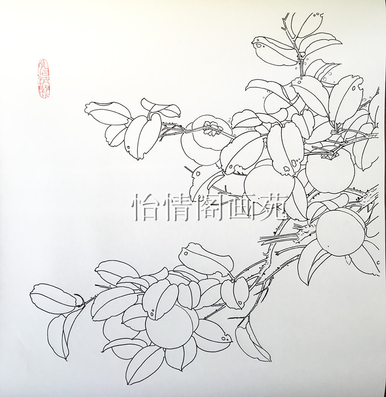 Work stroke white sketching base draft persimmon white sketching landscape figures Flowers Birds Animal Thread Sketch in Physical Paintreading 335