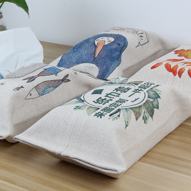 Small fresh cotton hemp cloth art paper towel bag custom paper towels a piece of printed cotton linen cloth art sanitary paper box to decorate the living room