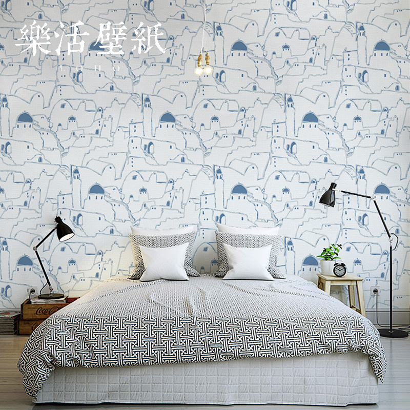 Mediterranean style Santorini Castle Nordic art wallpaper Personality creative wallpaper Living room bedroom Blue