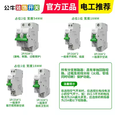 Bull air switch air open circuit breaker single pole 1p63a short circuit protection switch switch household master switch 2p