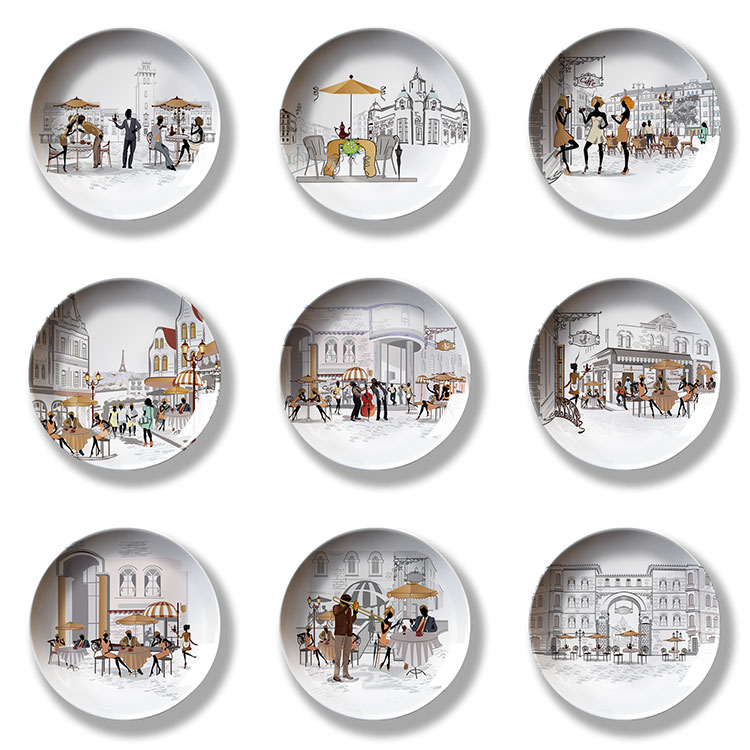 Coffee bar Catering nightclub Decorative Hanging Disc Minima Eu Style Painting Scenery Decorative Wall Background Wall