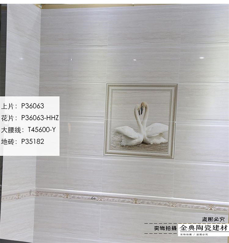 300*600 wall tiles 300*300 matching non-slip floor tiles 600 long waist line matching flower pieces