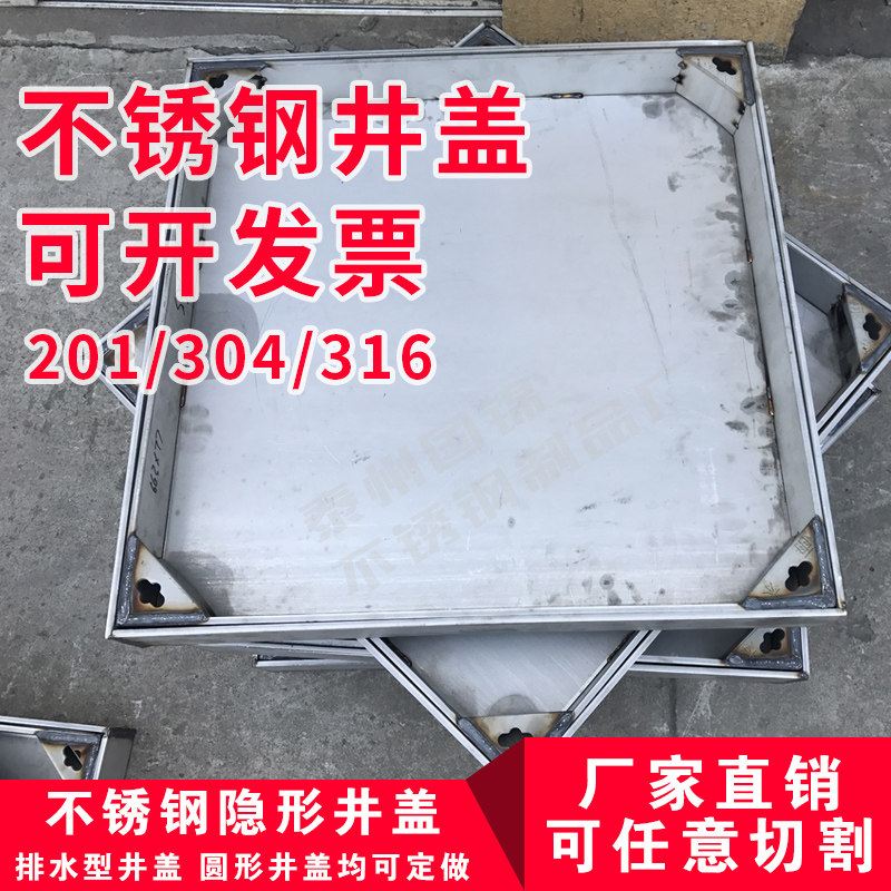 Guojin 304 stainless steel well cover invisible well cover square drainage ditch sinking inspection well cover cover grille decorative circle