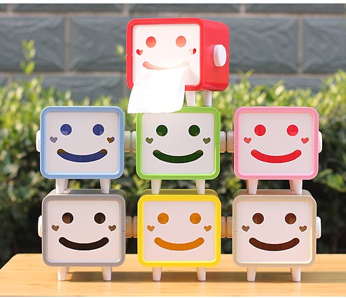 Cute smiley tissue box Hengyu tissue drawer rectangle cartoon roll paper box drawer paper box napkin paper drawer