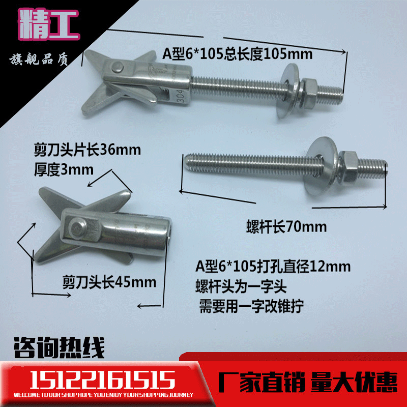Cut-type 304 stainless steel anchor bolt hollow wall with expansion pipe M6M8M10 porous anchor bolt expansion screw