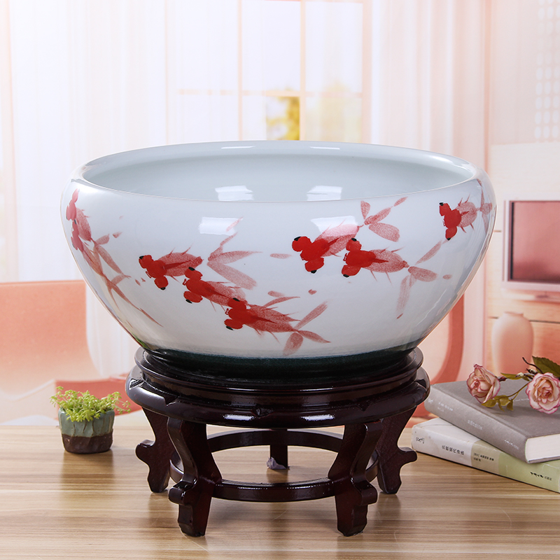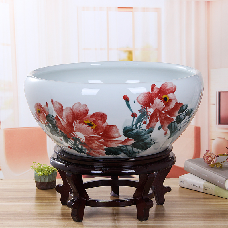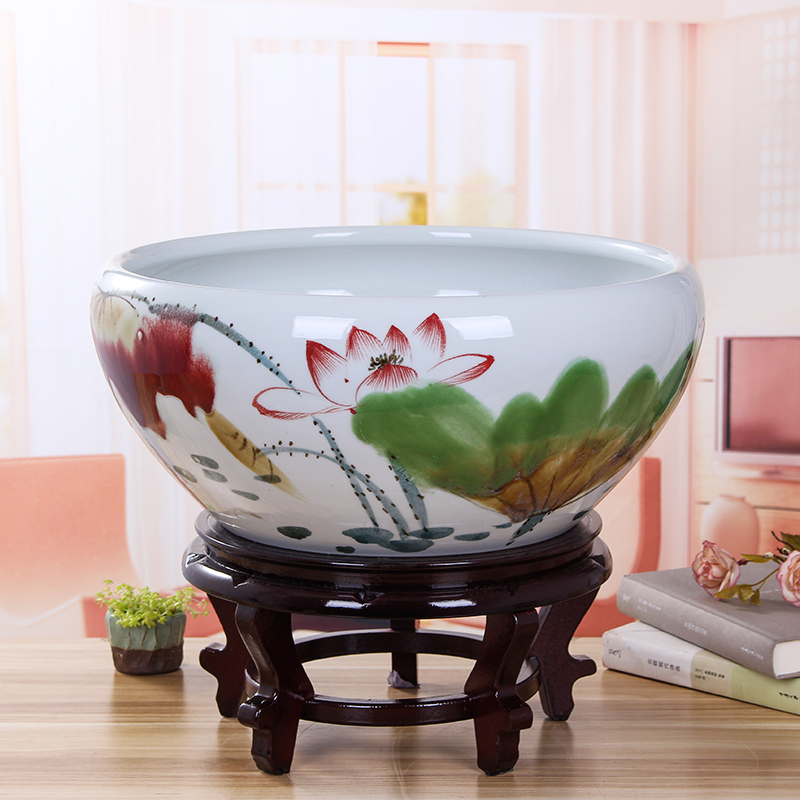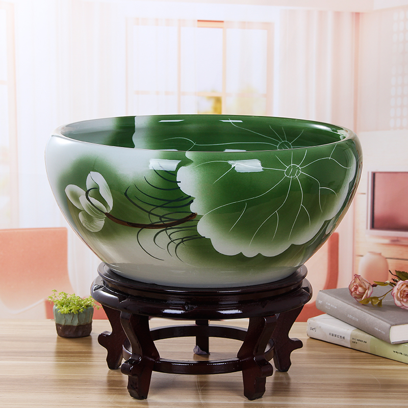 Jingdezhen Ceramic fish tank Large number of green flower raising gold fish tank sleeping bowls lotus tub lotus turtle cylinder pelvis living room swing piece