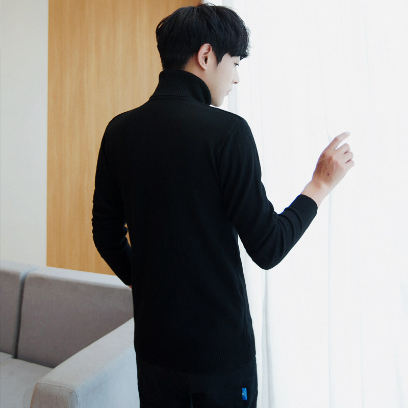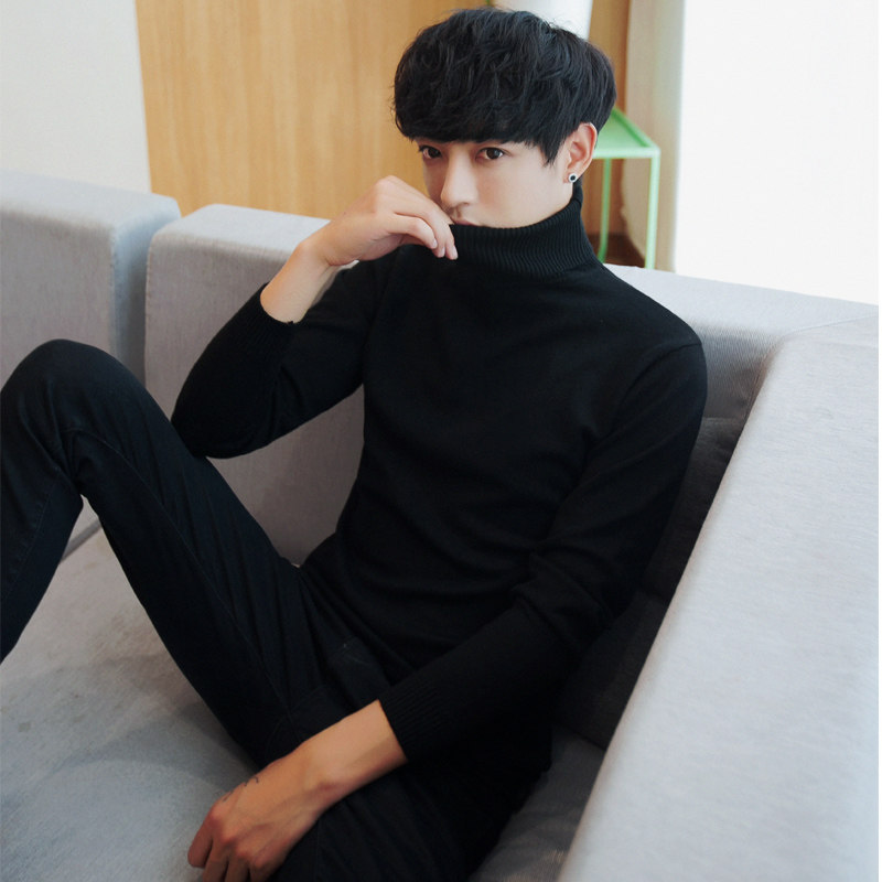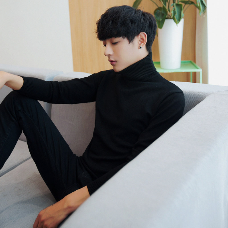 Men's turtleneck sweater Autumn and winter pullover thickened sweater Korean slim trend solid color black base shirt
