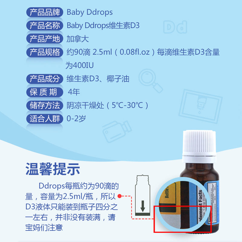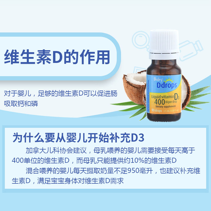 Canadian ddrops infant and child vitamin D3 baby VD droplets promote calcium absorption of 90 drops 400iu