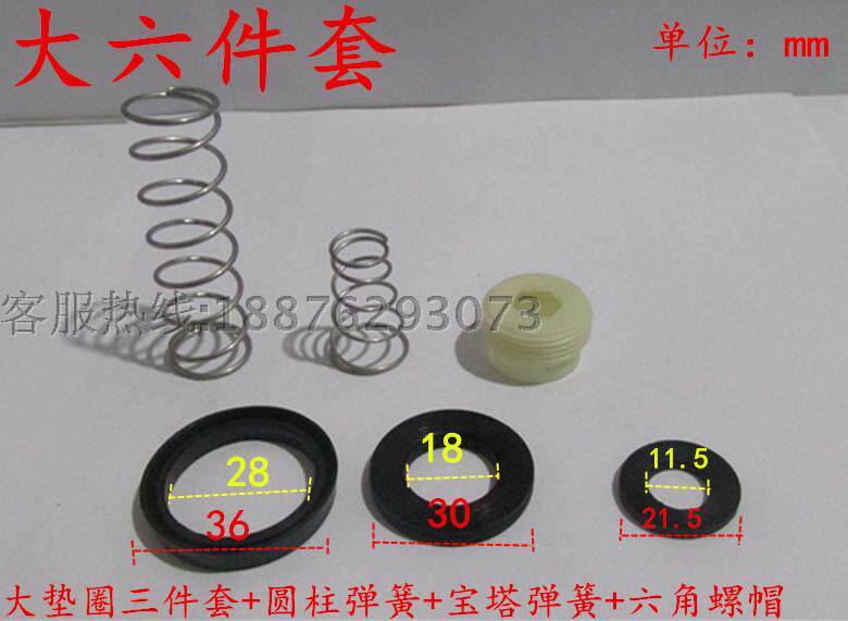 Large three sets of cylindrical springs (2 fit) pagoda springs (2 fit) small six pieces of hexagonal screw cap (2 fit) large six pieces flat cushion (2 fit) small five pieces with groove washers (2 fit) big