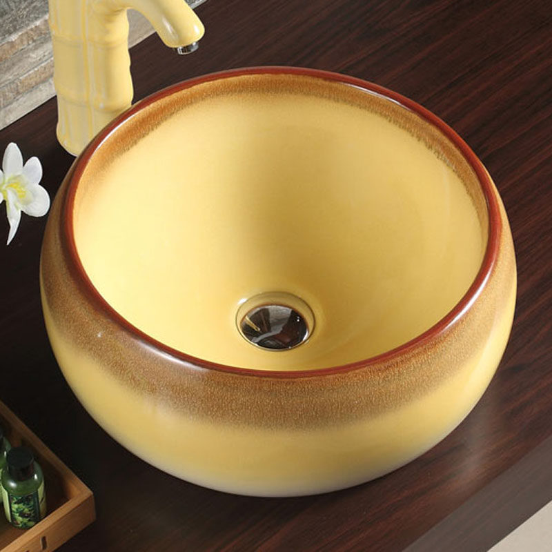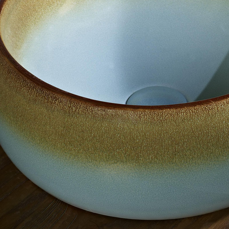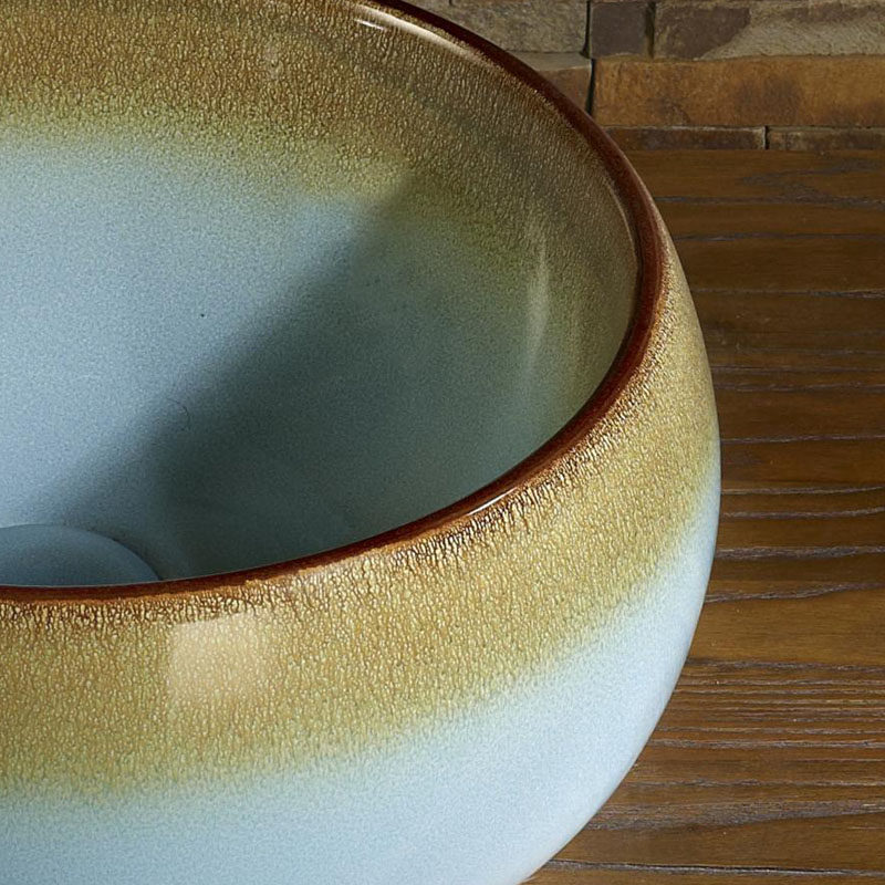Round kiln turn blue yellow art washbasin counter basin Retro American gradient color ceramic wash wash basin
