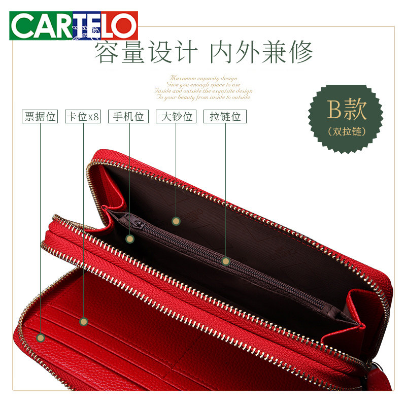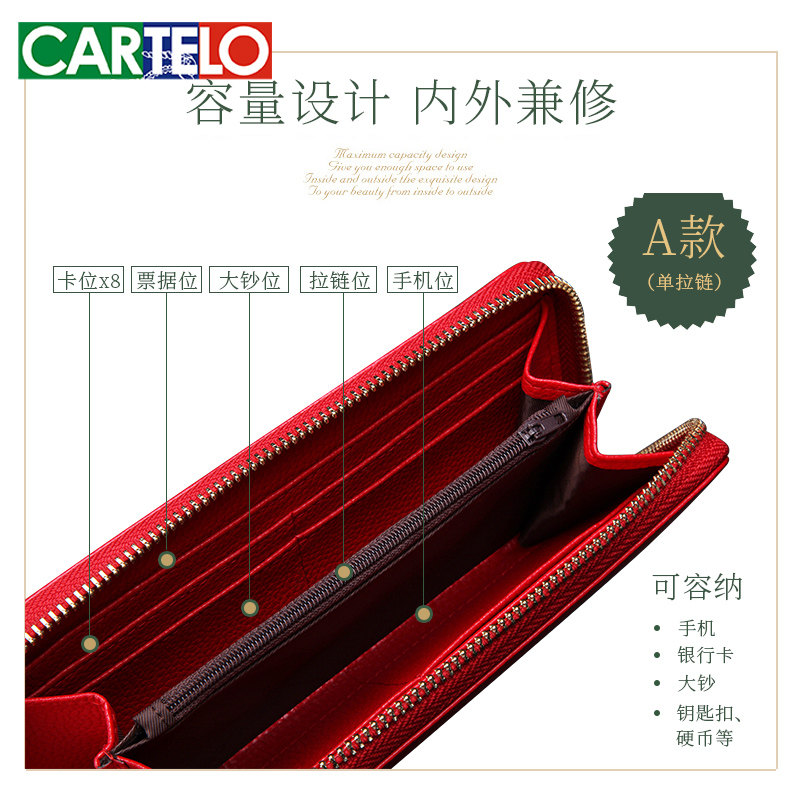 Kadile Crocodile Lady's wallet - leather long - form multi - card zipper bag large capacity cowskin handbag tide