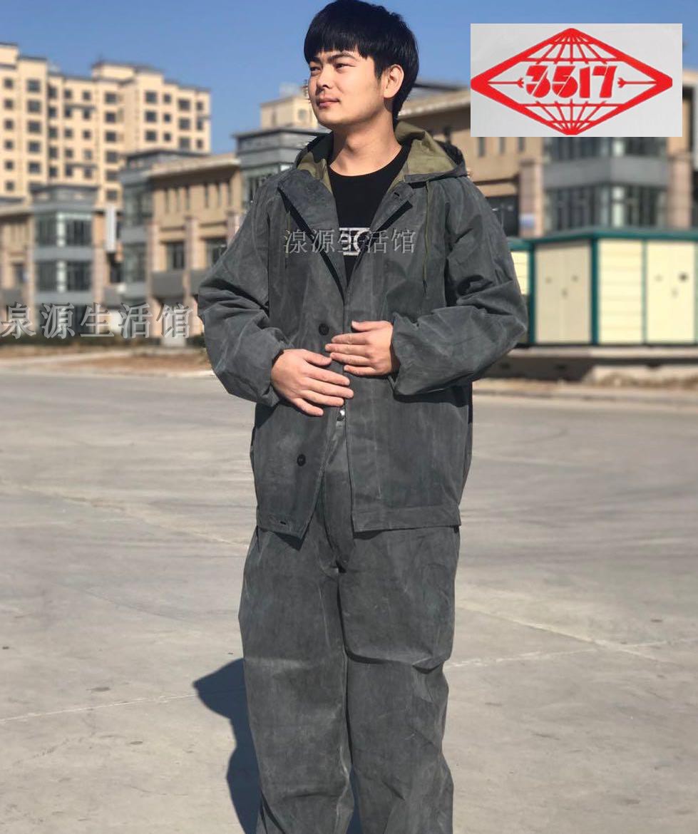 Inter-China 3517 front buckle type decomposition integrated double face 87 style with cuff canvas rubber Flood raincoat old fashioned-Taobao