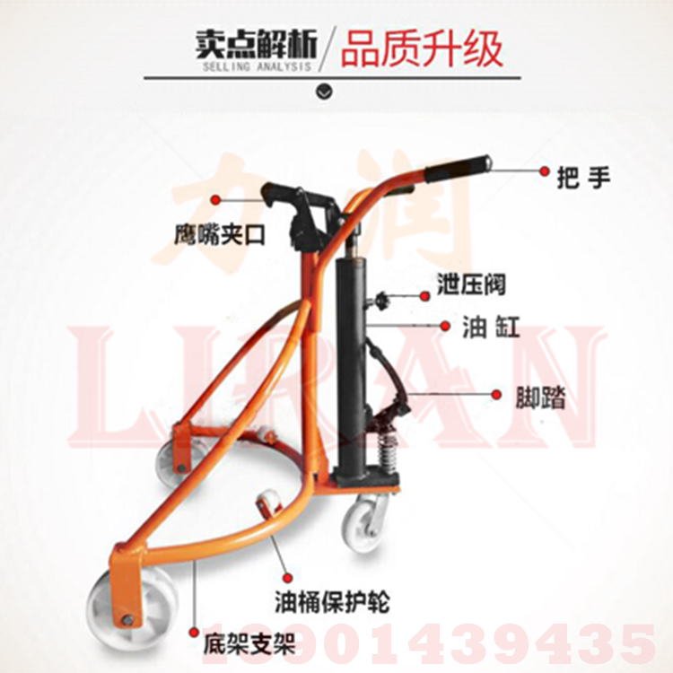 Lirun manual hydraulic oil drum truck iron drum forklift iron drum plastic drum universal truck
