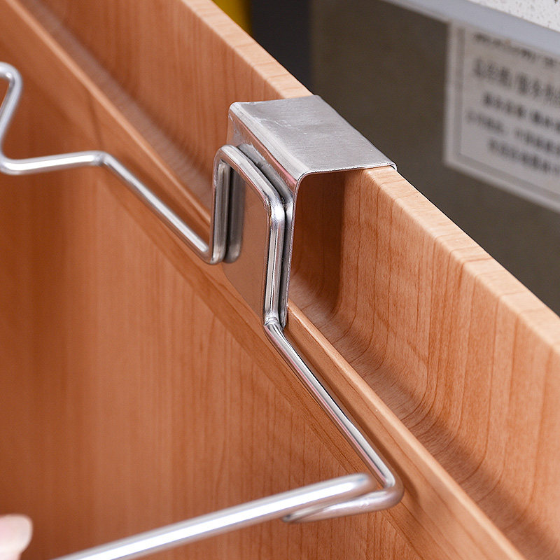 Stainless steel hanging garbage rack kitchen trash can cabinet door hanging rack storage shelf household plastic bag bracket