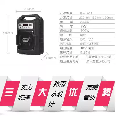Daile S20 stall audio rain-proof and fall-proof shop promotion portable Bluetooth square dance wear-resistant high-power bass