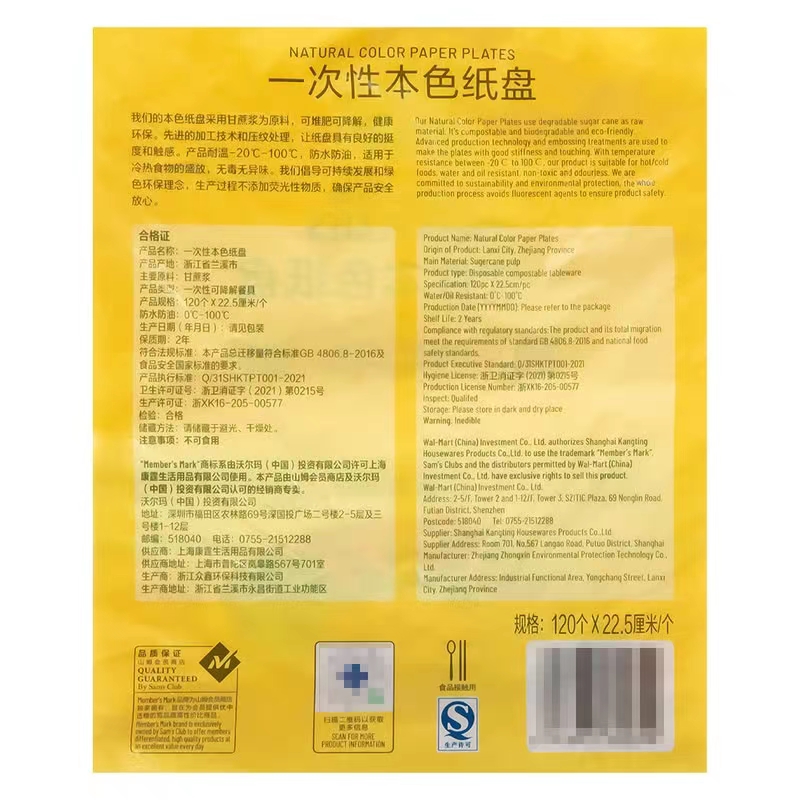 Sam Members Mark once-colour paper disc starch disc microwave frozen degradable dinner plate