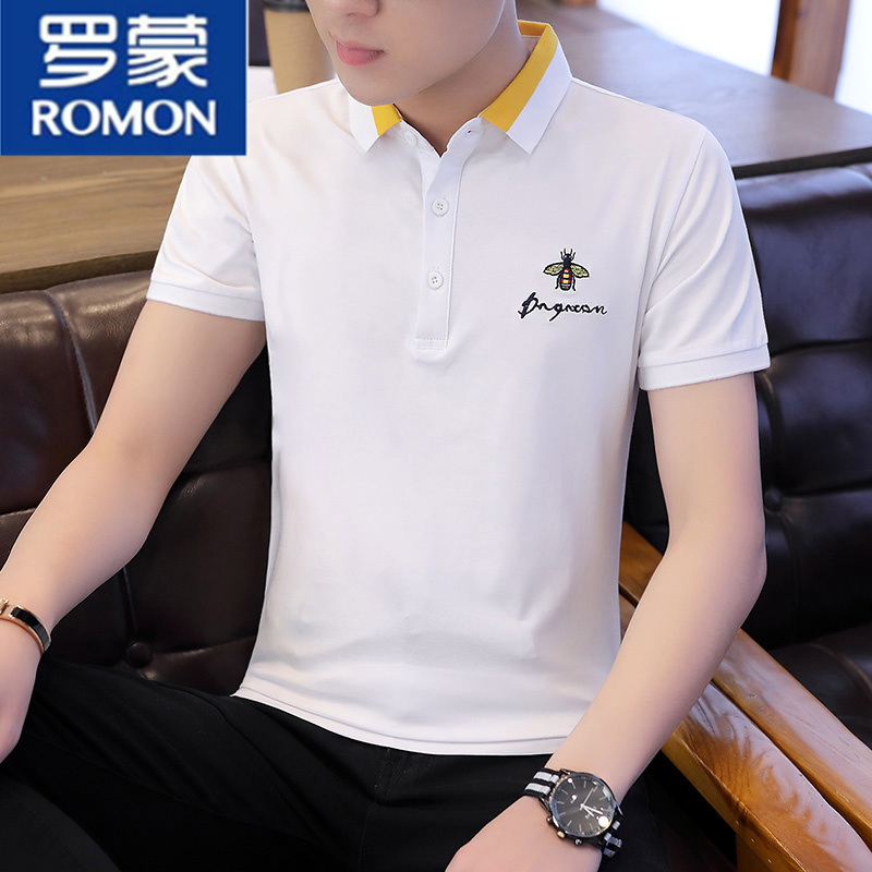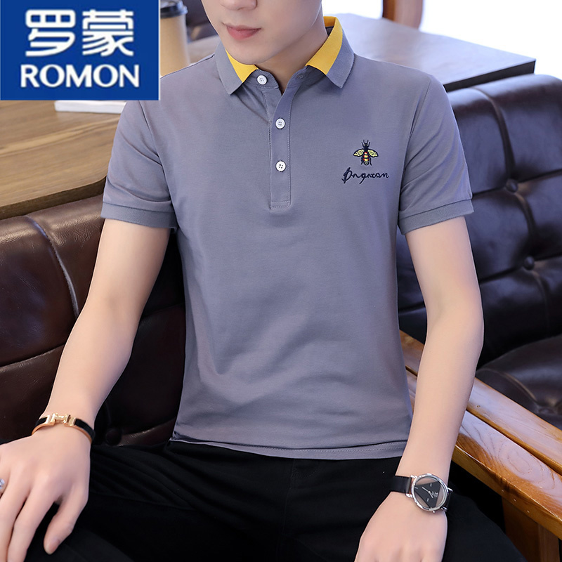 Romon Short Sleeve T-Shirt Male Trend Tide Card Summer 2022 New Turn-collar POLO Jersey Men's Summer Mounted Handsome T-Shirt