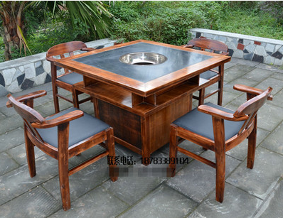 Manufacturer customized marble hot pot table and chairs battery stove liquid gas cooker solid wood cabinet type hot pot table-Taobao