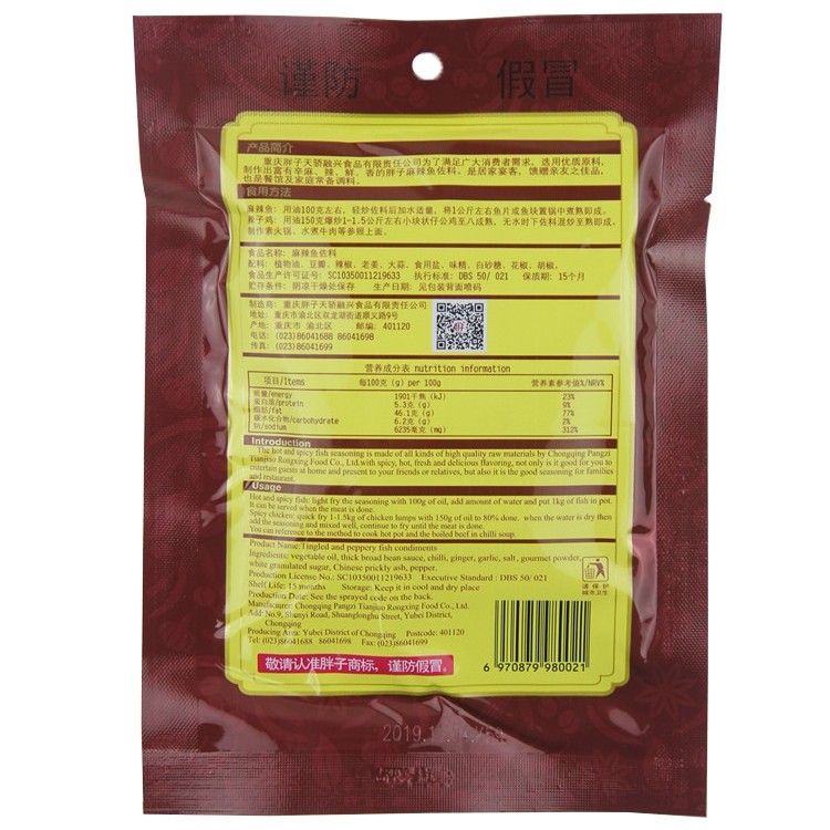 Chongqing fat spicy fish seasoning 180gX40 bags full box hot pot bottom material boiled fish seasoning