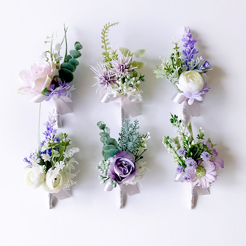 Shallow Purple Thoracic Lapels Wrist Flower Sisters Flowers Emulation Hansi Style Wedding Show Wedding photography Decorative Accessories