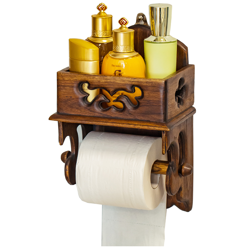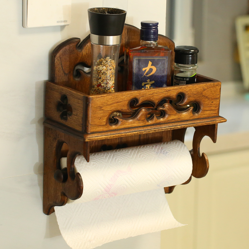 Thailand imported paper towel rack powder room toilet roll toilet paper holder mobile phone paper holder solid wood creative retro punch-free