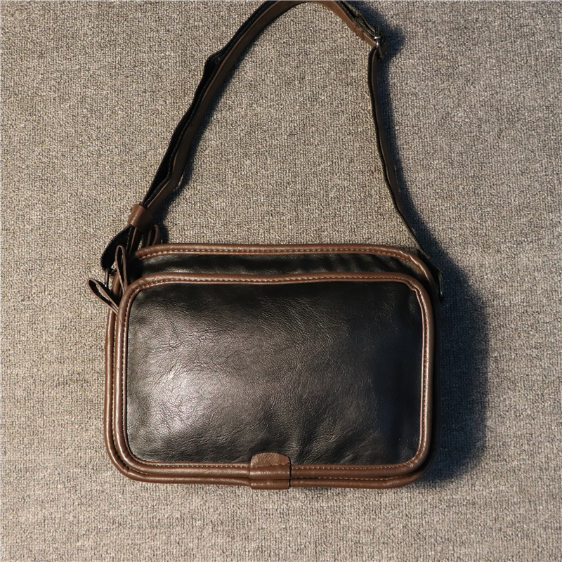 2022 new trendy men's single shoulder bag casual soft leather male type inclined satchel leather bad retro man's bag