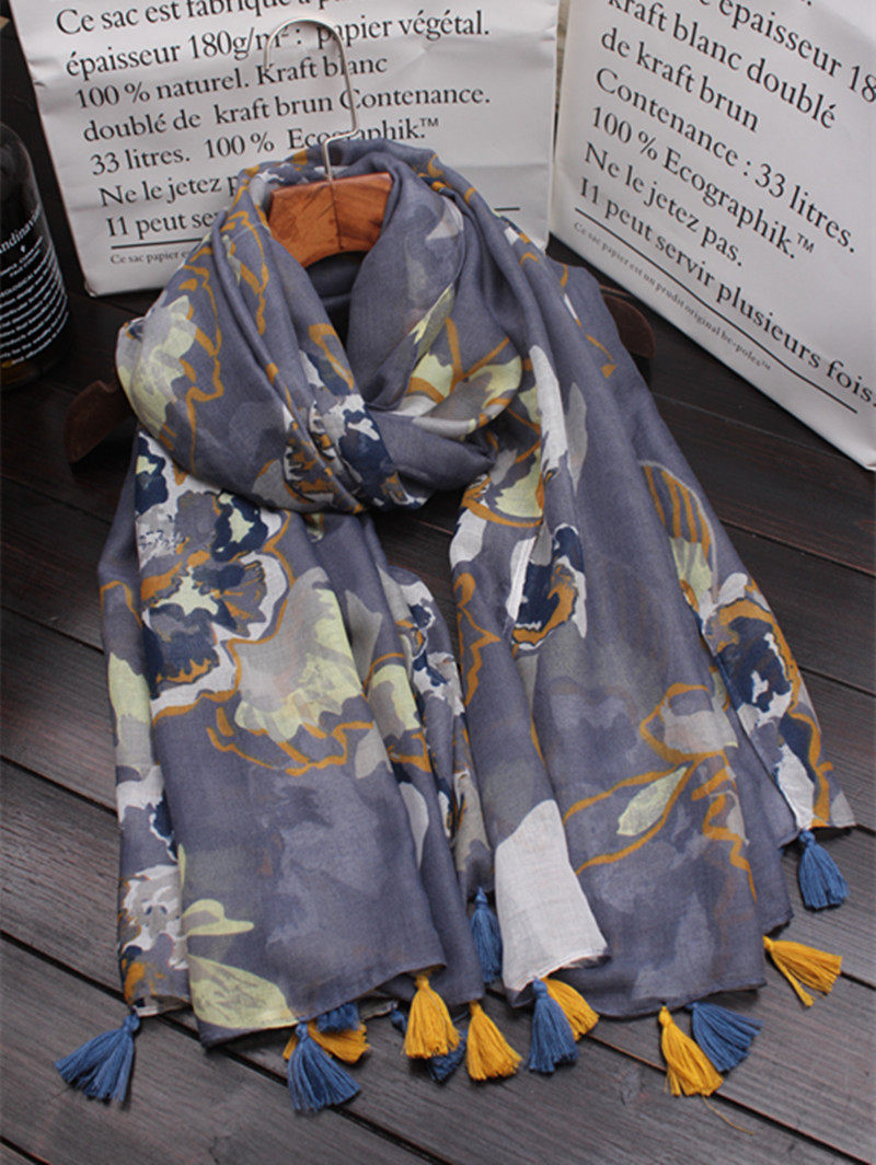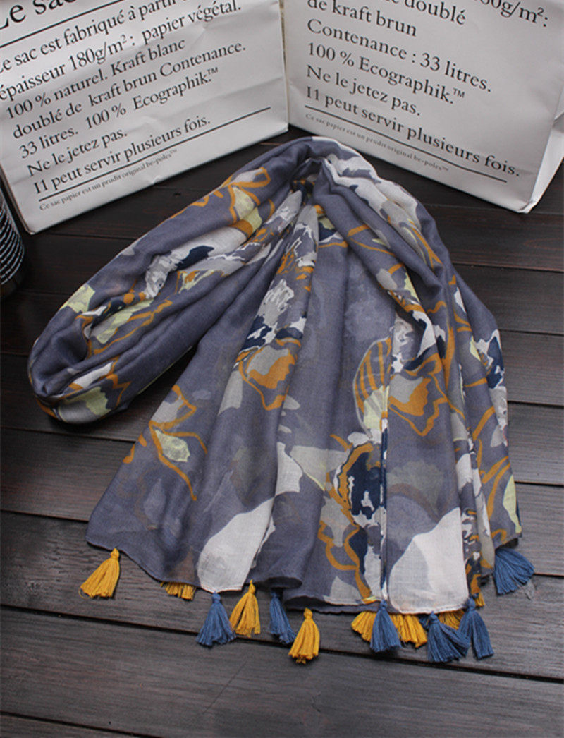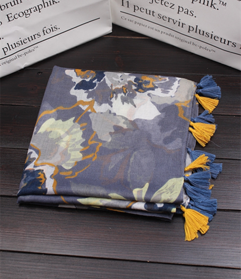 Foreign trade Original single new retro style Splash Ink Flowers Pattern Cotton Linen Scarves Fashion 100 Hitch Sunscreen Silk Scarves Shawl