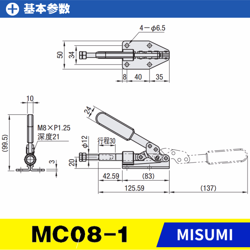 The same MISUMI horizontal profiling push-pull quick clamp tooling clamp alternative Mithrice elbow clamp MC08-1