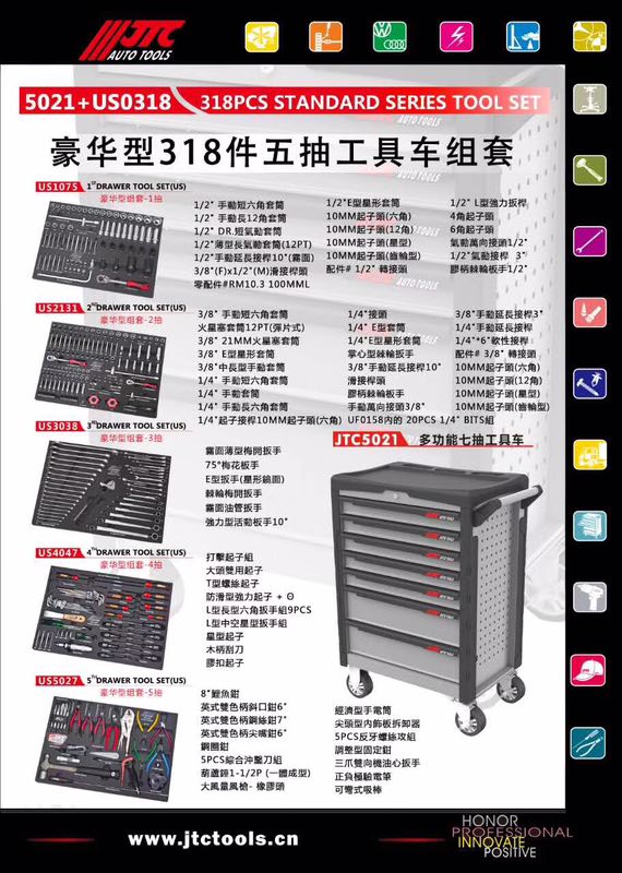 Hauhua type 318 pieces five-draw tool car set JTC5021 JTC5021 US0318 group sets tool car complete vehicle tool
