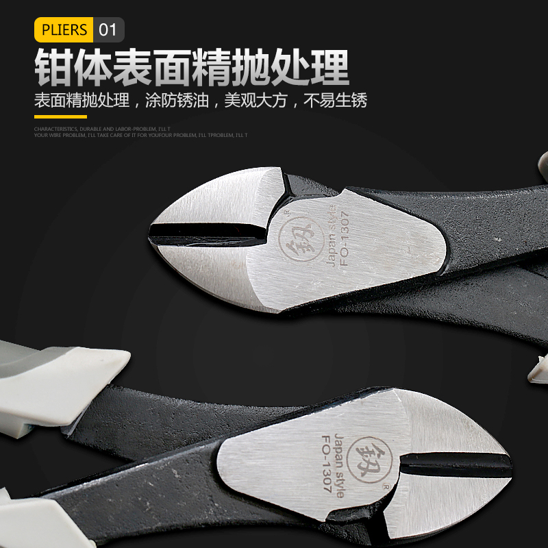 6 inch alloy steel bevel pliers (1307) 7 inch alloy steel bevel pliers (1308) 6 inch (1307) + 7 inch (1308) 8 inch force saving inclined jaw pliers (2015) 6 inch inclined jaws with spring stripping mouth (1207) 6 inch alloy steel bevel pliers (1055) 7 inch multi-function inclined jaws (2021)
