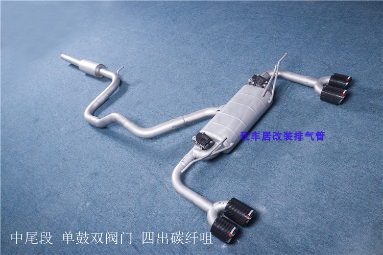 Mid-tail section double out single valve exhaust midtail section Four out single valve exhaust midtail section in single valve exhaust midtail section M drum double out midtail section M drum four out midtail section M drum