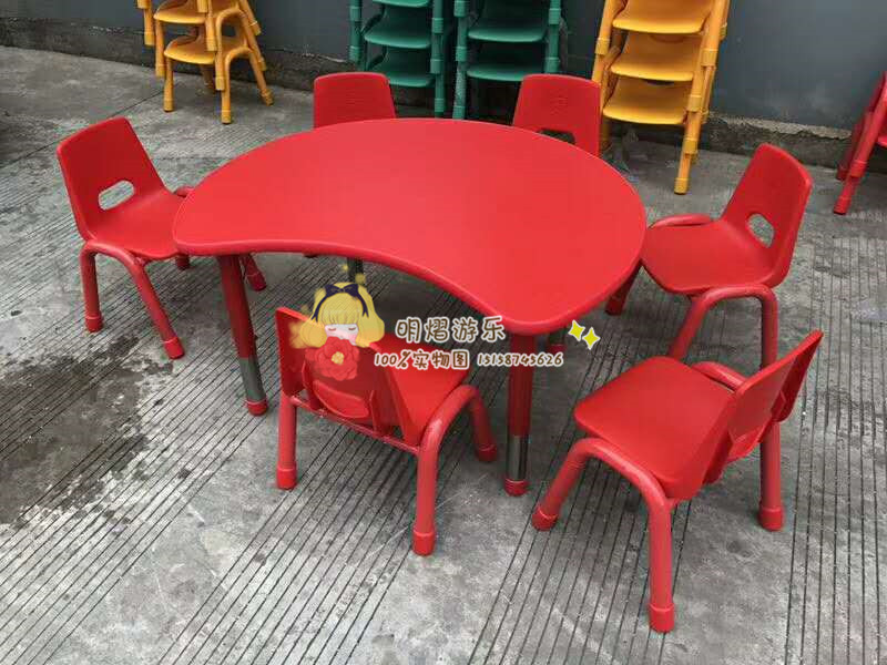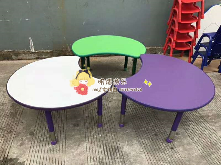Hot Recommendation Kindergarten Fire Protection Plate Crescent Table Children Half Round Table Parquet Table Lifting Table 6 Table Study Table And Chairs Desk-Taobao