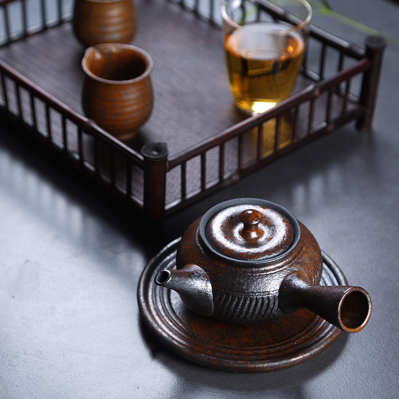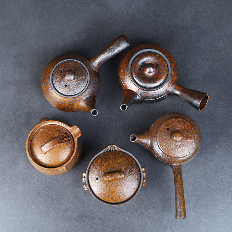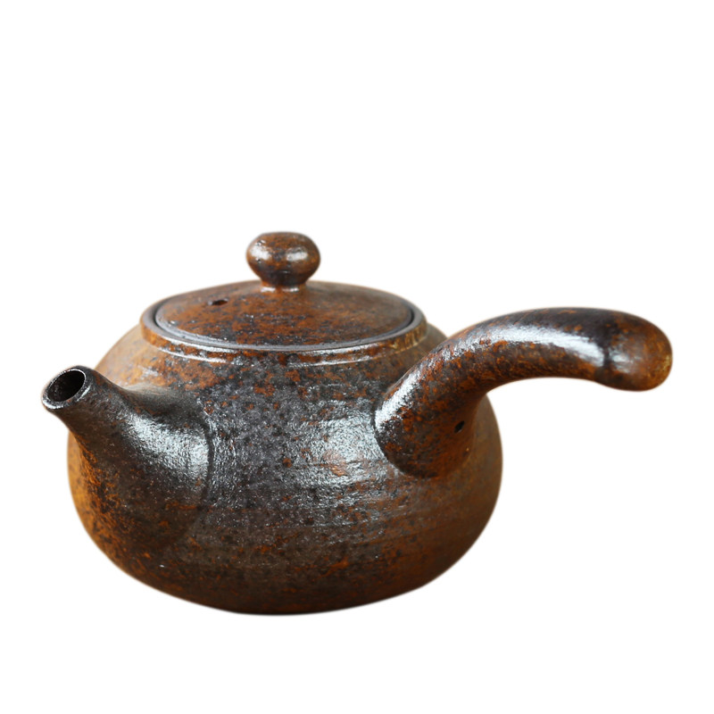 Coarse pottery teapot Imitation wood-fired handmade teapot Kung Fu tea with side handle pot Japanese retro tea West restore-burned tea brewing device