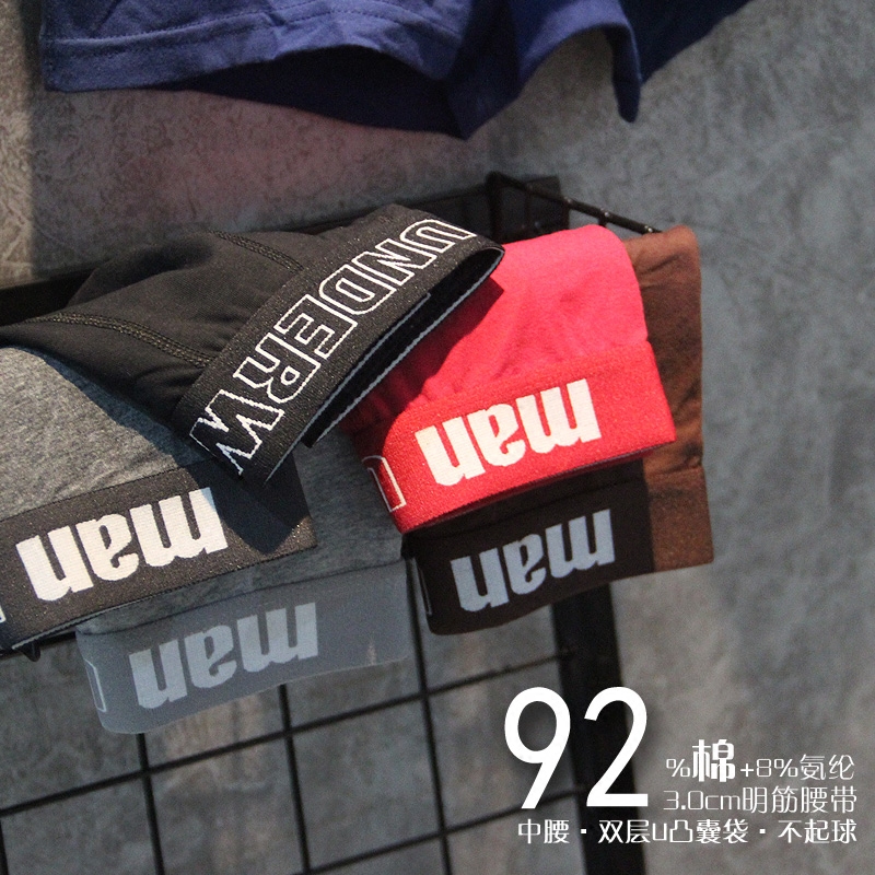 Pure Cotton Men's Four Corners Underwear Pure Color Mid Waist Large Size Shorts U Convex Sacks Kleka Elastic Comfort Four-corner Safety Pants
