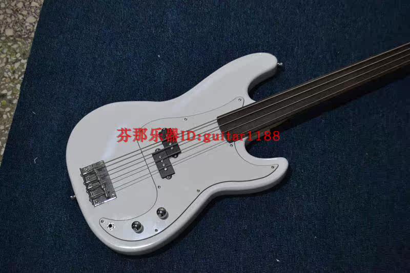 White No Pinders Student Practice Electrobass Fretless Electraic Bass F-3380