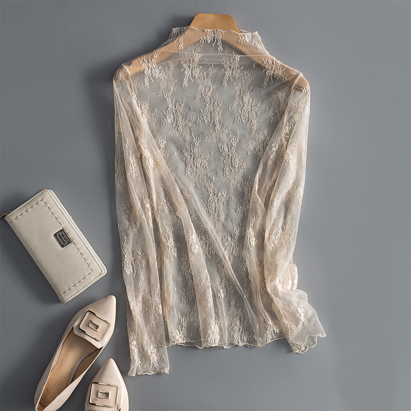 Beautiful, cost-effective, small, sexy, light, see-through lace, slim-fitting, thin top, base shirt