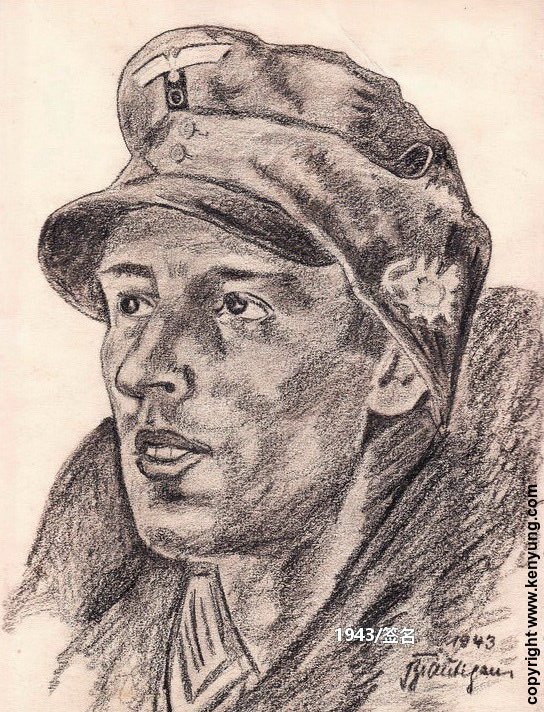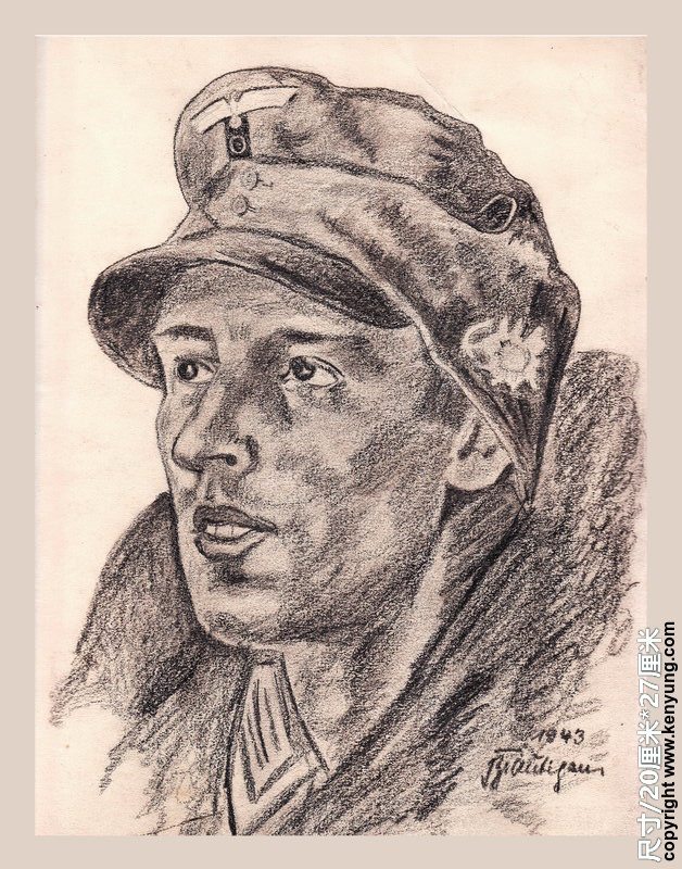 WWII German mountain hunter painting (picture size: 20 cm * 27 cm)